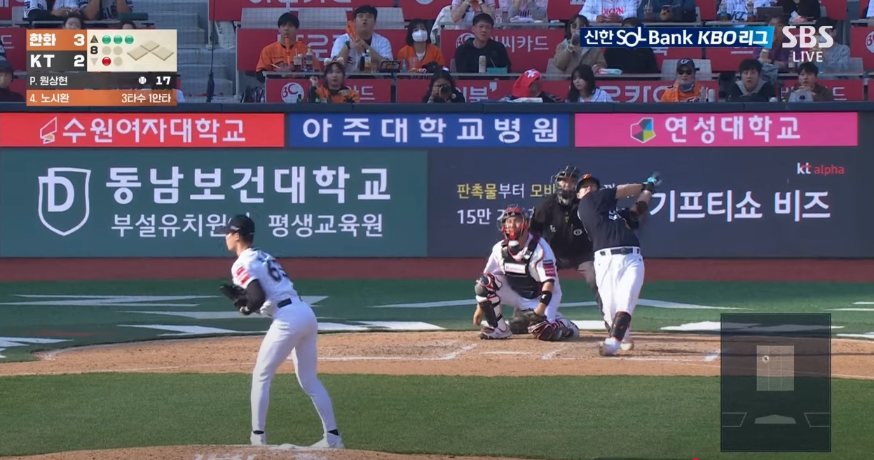 1-2로 뒤지던 7회초, 황영묵의 동점타에 이어 심우준은 친정팀 KT를 상대로 우중간을 가르는 2루타를 터뜨려 3-2 역전에 성공했습니다. 이 한 방으로 경기는 완전히 한화 쪽으로 넘어갔습니다.